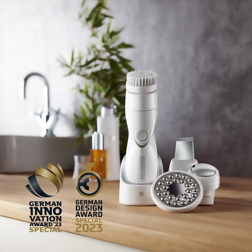 Als kosmetisches Gerät zur Heimanwendung mit wechselbaren Aufsätzen verbindet das neue Produkt gleich vier Pflegeroutinen: porentiefe Gesichtsreinigung, intensives Peeling, Anti-Age-Booster und Körperhaut-Straffung. In Verbindung mit den zum Alter und zu den Hautbedürfnissen passenden Basispflegeprodukten sorgt Zeitgard Pro für zeitlos schöne Haut.