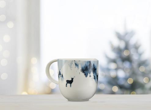 Der hochwertige, bauchige Henkelbecher, gefertigt von der Marke Villeroy & Boch aus der Serie NewMoon, liegt angenehm in der Hand und besticht durch ein zeitloses und modernes Design. Als Dekor schmiegt sich ein winterlicher Berghang, auf dem der Weihnachtsmann höchstpersönlich auf Skiern ins Tal saust - fröhlich, schwungvoll und mit einer Extraportion Festtagsstimmung.